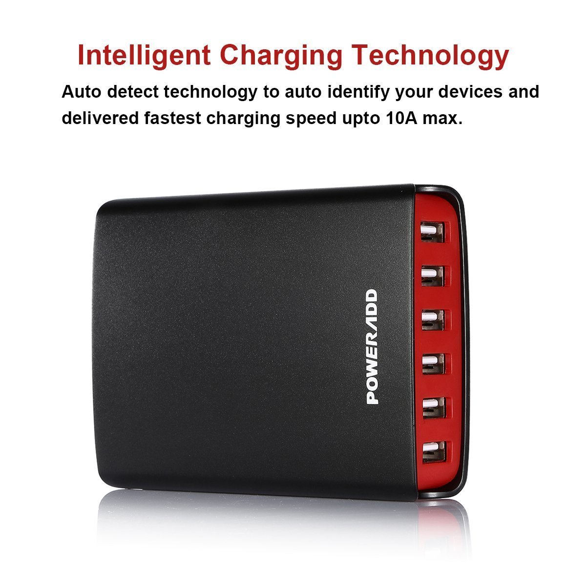 50 Watt 10 Amp Intelligent 6 Port USB Charger For Multiple Devices