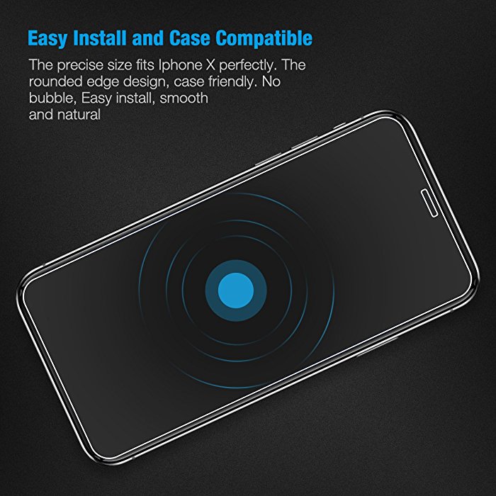 This Poweradd tempered glass screen protector for iPhone X is made to be hard, durable and highly resistant to scratches and scrapes. The film is made of advanced PET film from Japan, it features 9H hardness for protection. The screen protector has unique 3D round edges that can fit iPhone X perfectly. The screen protector is designed to be thin, highly transparent.
