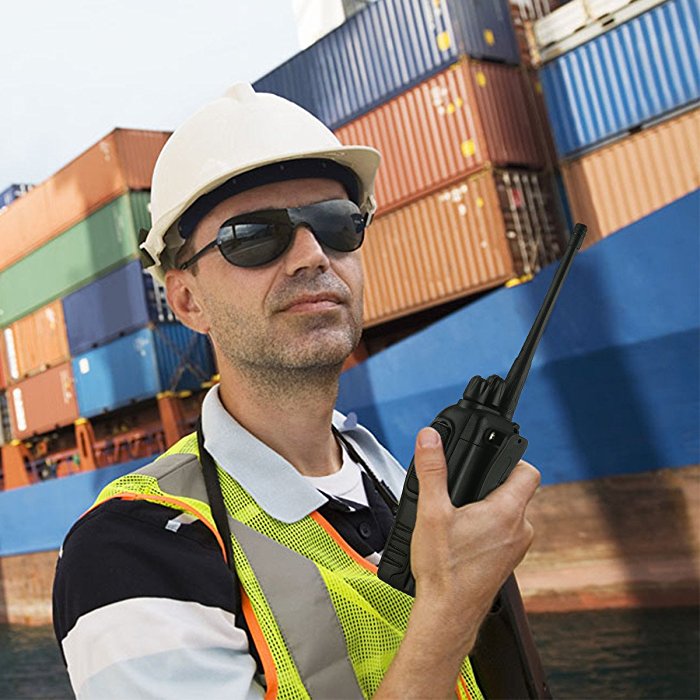 This handheld walkie talkie features great ergonomics for easy, comfortable holding in hand.