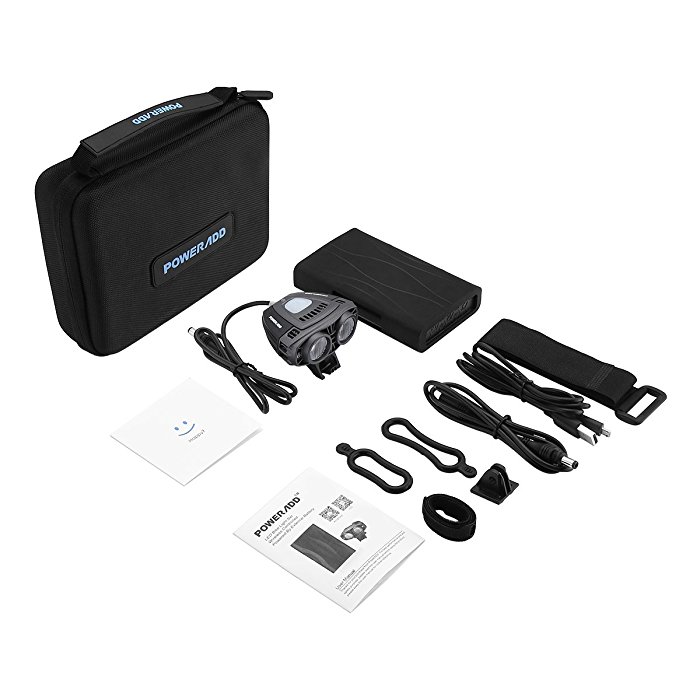 Powered by 12000mAh Power Bank, 1600K Bike LED FlashLight, SOS Light, IPX-5 Water Resistant Bike Light