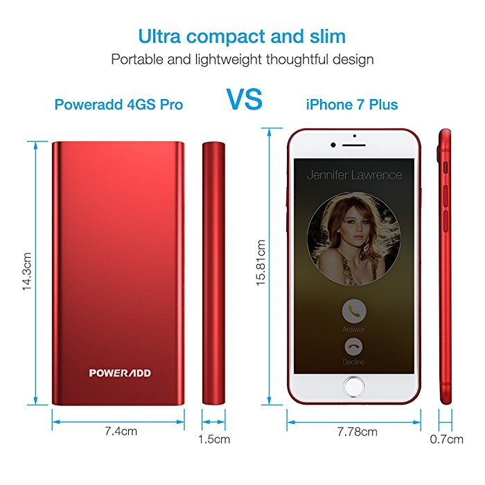 Poweradd Pilot 4GS Pro power bank has smart output ports which can automatically detect your USB device’s optimal charging current and arrange the fastest charging speed. The charging current can reach to up to 3 Amps for the maximum. It will take about 1 hour to charge an iPhone 6 fully. The high battery capacity 12000mAh portable power bank can give over 4 full charges for an iPhone 6/6s, or about 2 charges for an iPad Mini.