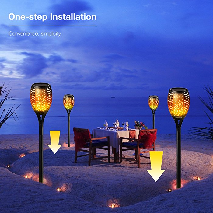 This solar flickering LED tiki torch is able to automatically detect the environment around it. It will turn itself on or off when the built-in daylight sensor detects it’s night or day. The solar LED light is an intelligent and energy-saving product. With the help of Dust-to-Dawn Auto On/Off Function, you will find your life much easier when you need a light outside your house.