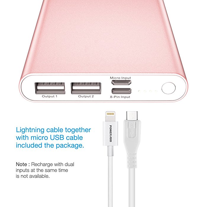 Beautiful Finish with Rose Gold Color Design, Lightning Input & Micro Input, and High Capacity 12000mAh