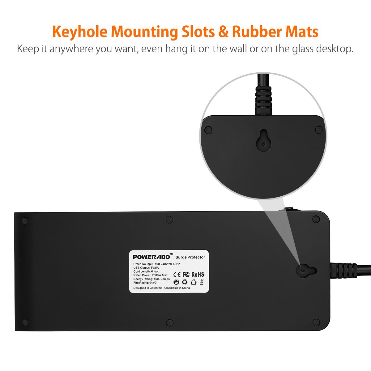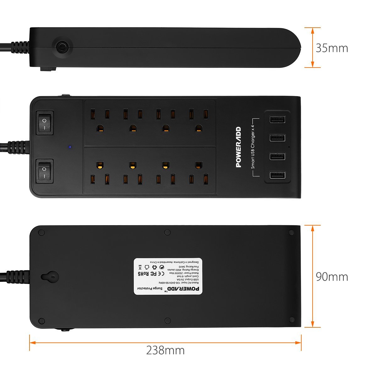 Poweradd Advantages: 8 x standard 3-prong grounded NEMA 5-15 power outlets with 4500 joules surge protection for homes and offices.
