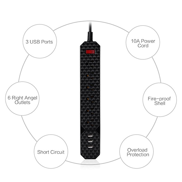 Outlet Quantity: 6 AC plugs + 3 USB outlets