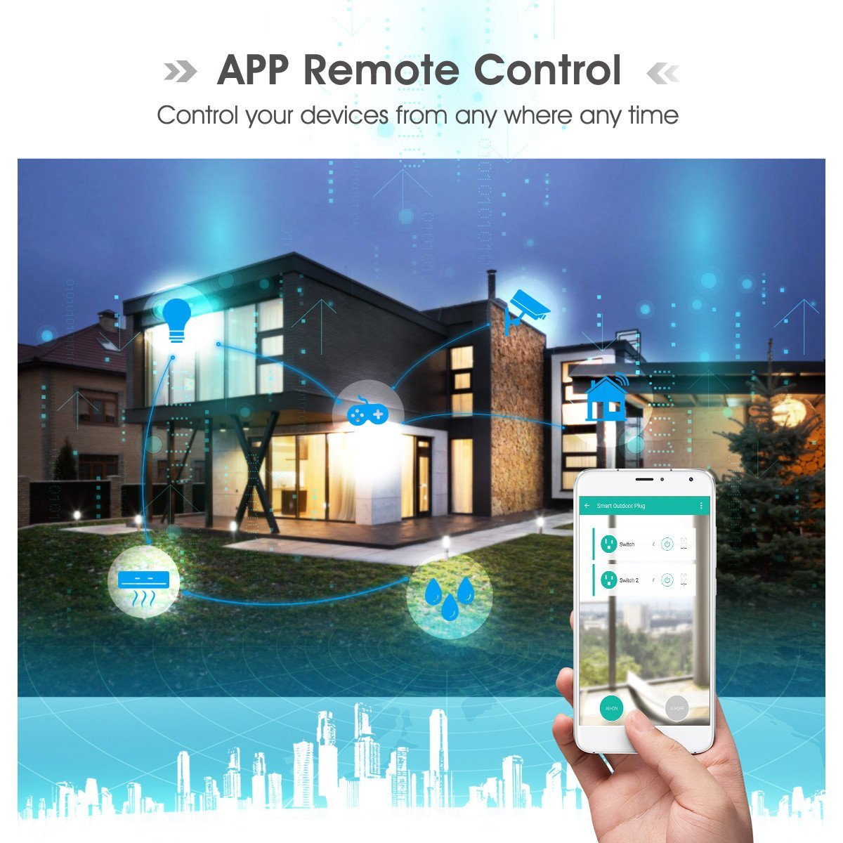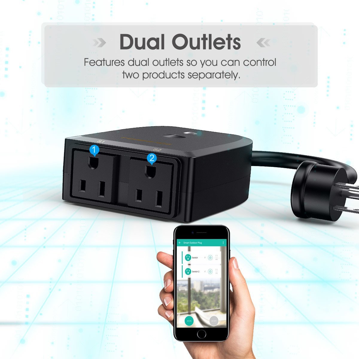 This Wi-Fi outlet can respond to Amazon Alexa and Google Assistant and can be controlled by human voice. You can control outdoor lighting system and other household appliances easily with this outdoor smart plug socket.