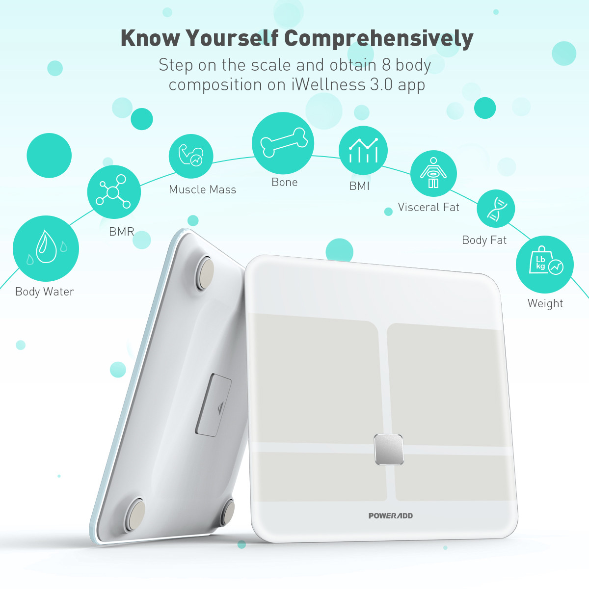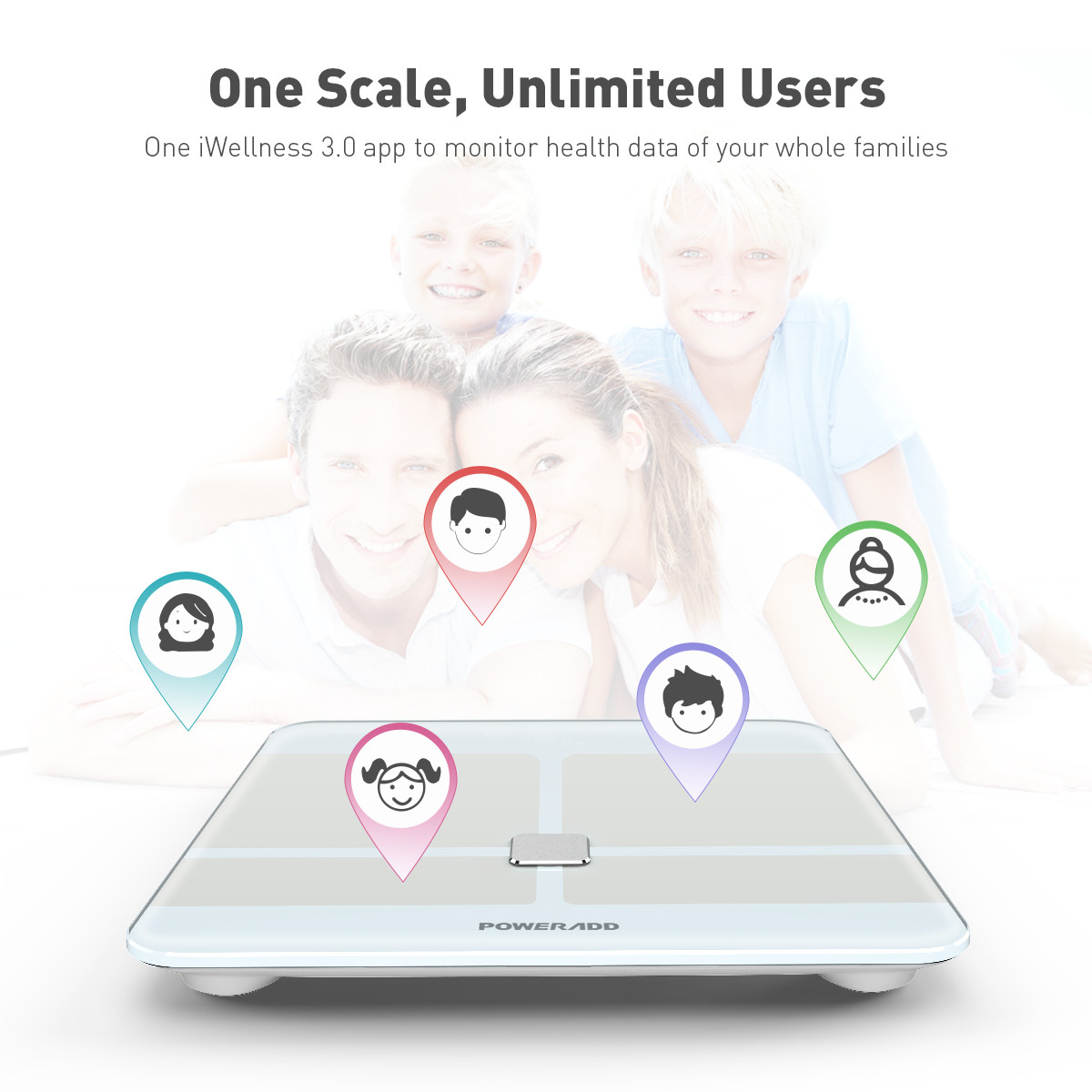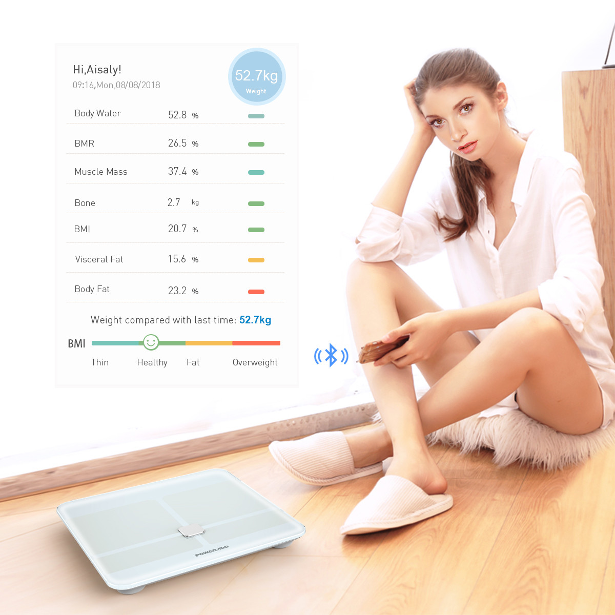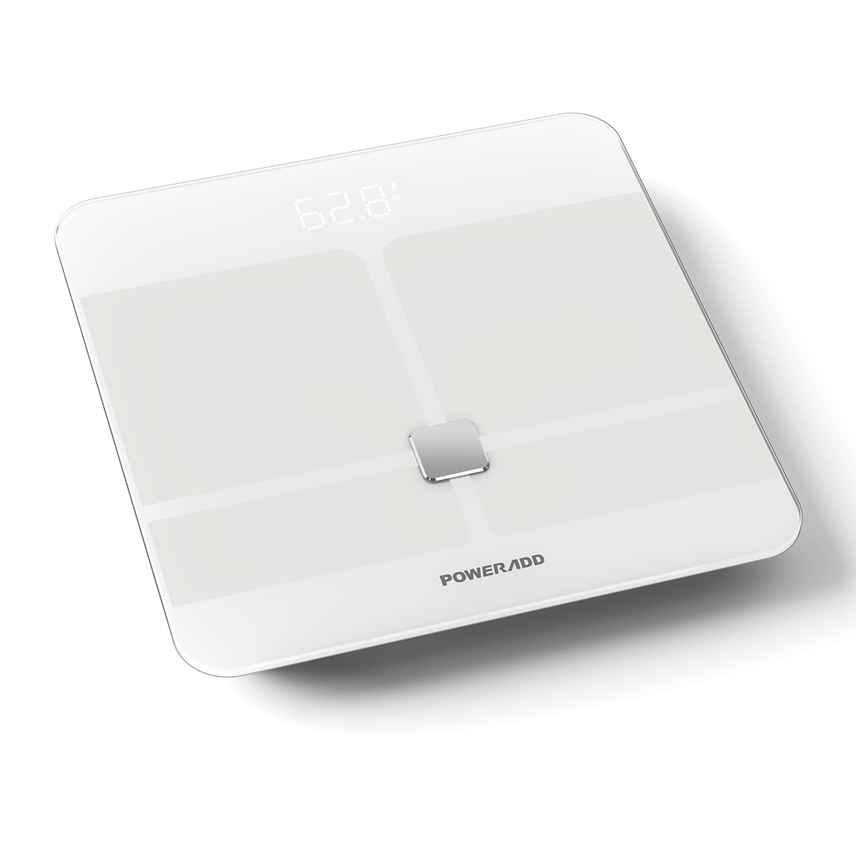 Poweradd smart body fat scale provides a handy and quick measuring operation because of eco-friendly ITO coating, which is different from traditional metal measurement that requires demanding contact with electrode for a accurate measurement. More importantly, accuracy is not compromised with advanced Bioelectrical Impedance Analysis (BIA). Golden-ratio glass panel perfectly fits with your foot and makes you feel comfortable when step on this unit, at the same time safety is not missed with a reduced overturn risk owing to its low-profile structure.
