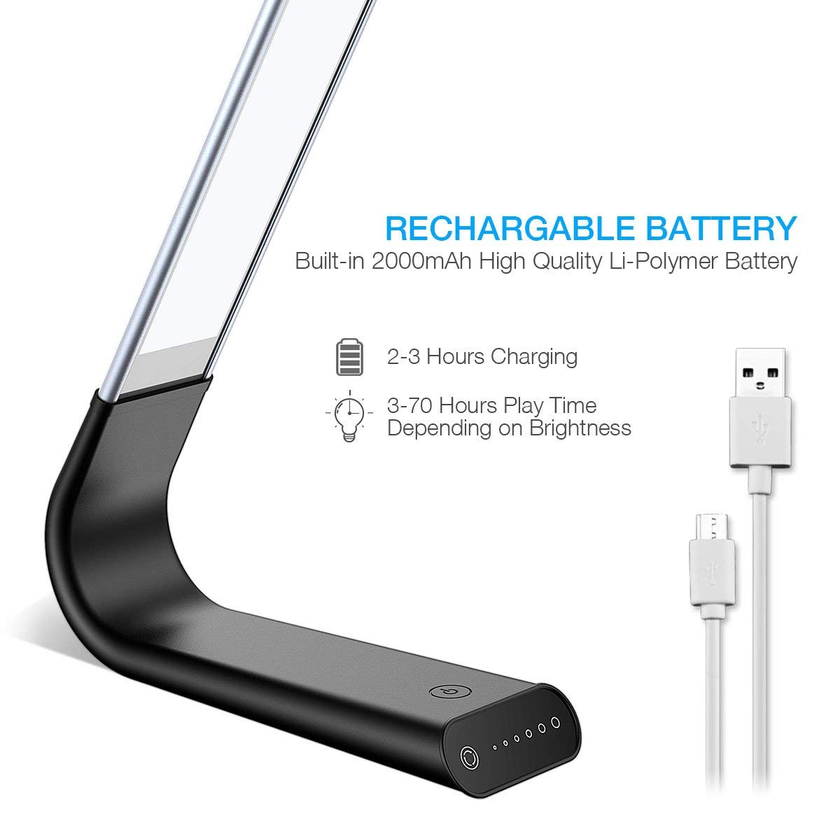 Advanced LED Touch: Sensitive sensor control enables you to turn on the light and adjust the brightness and modes effortlessly. - Built-in Rechargeable Battery: It has 2000mAh built-in rechargeable Li-polymer battery, requiring 2 to 3 hours’ charging time, offering 3 to 70 hours’ playtime depending on brightness.