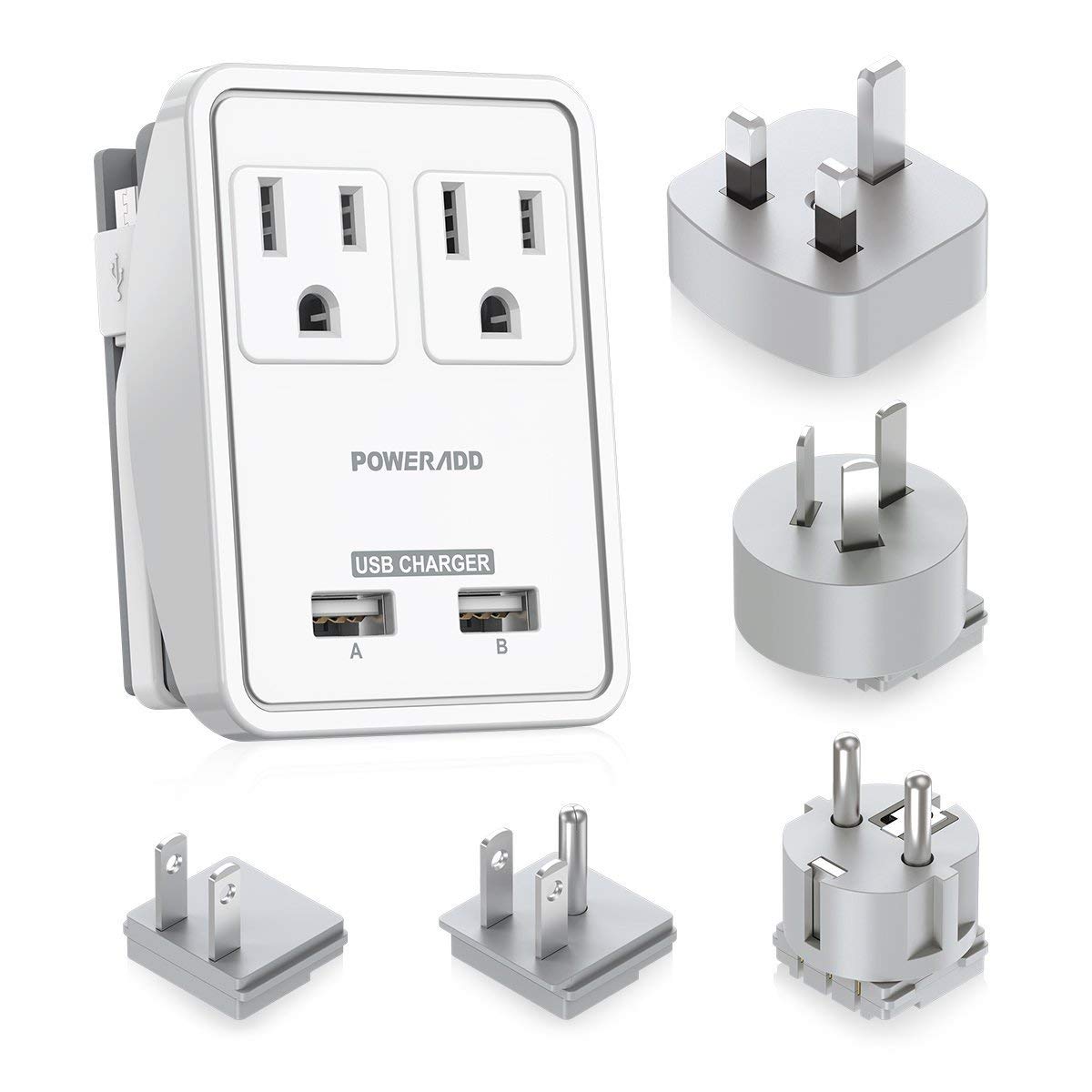 Durable Poweradd UL Listed 2 Outlet International Travel Charger