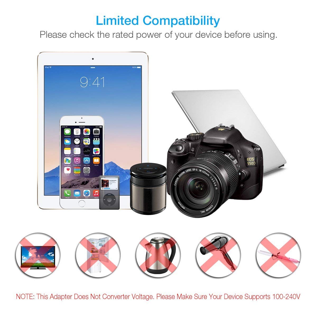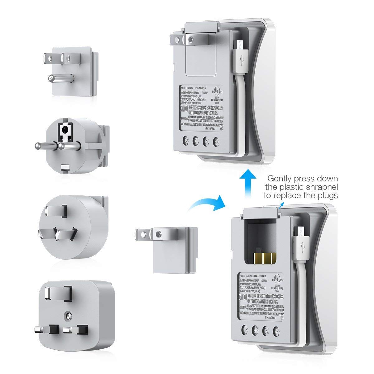 It comes with 5 international wall plugs, whic makes it ideal for cross-border traveling. 5 plug adapters included, support outlets in North America, United Kingdom, Continental Europe, Australia, Japan, China etc,covering more than 150 countries over the world.