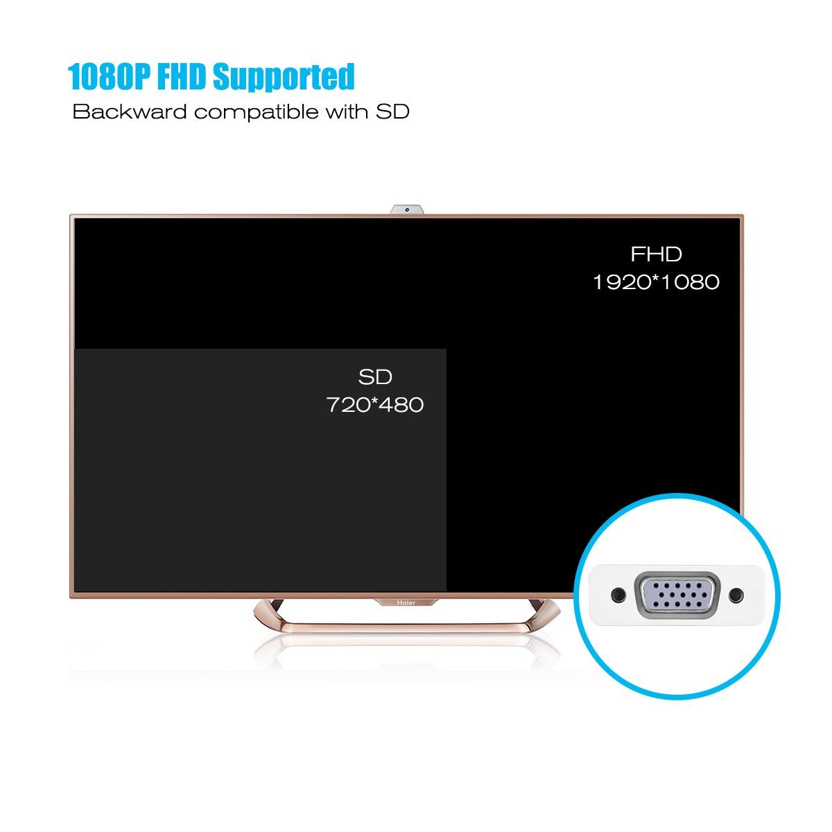 This portable USB C adapter is very easy to install and operate. The reversible USB type C makes it much easier to plug into the connector securely and effortlessly without worrying about a wrong direction. This USB 3.1 Type C to VGA adapter supports 1080P resolution for HD videos. It helps share photos, movies and games with your friends or family on the large screen. It’s also a great helper for PowerPoint presentation etc.
