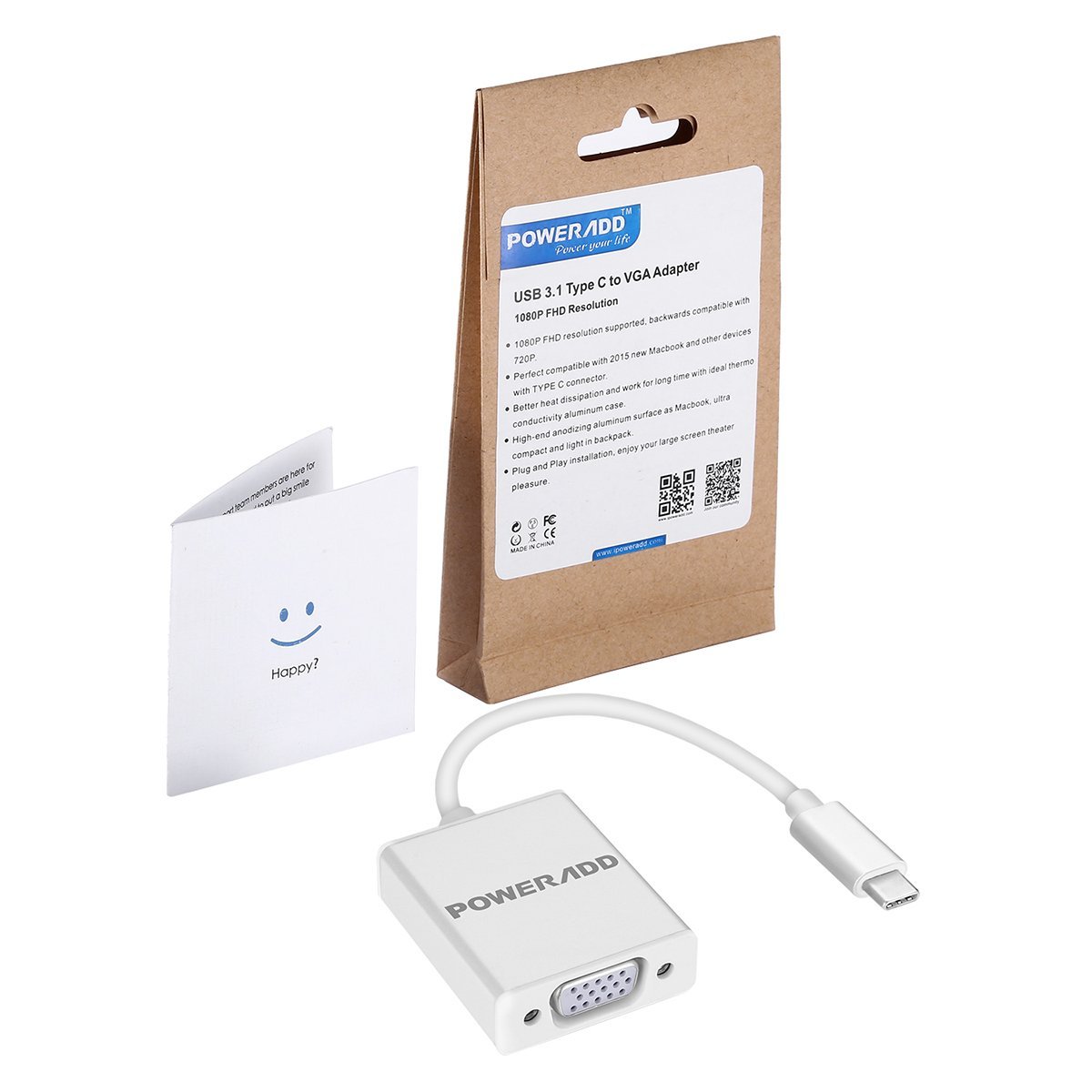Poweradd USB 3.1 Type C to VGA Adapter Support 1080P FHD Resolution